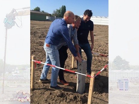 Gerrit van Dop, Fred van Luijk en Rene van Dop slaan de eerste paal