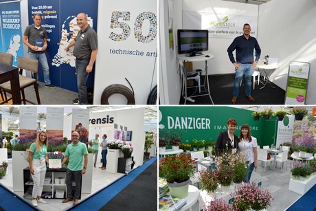 Van linksboven mee met de klok: medio oktober opent Wildkamp een nieuwe vestiging in Boskoop; Dominique Julius begint zijn eigen online marktplaats genaamdn Hortistock; Danziger en Florensis presenteren hun assortiment en noviteiten voor de groensector.