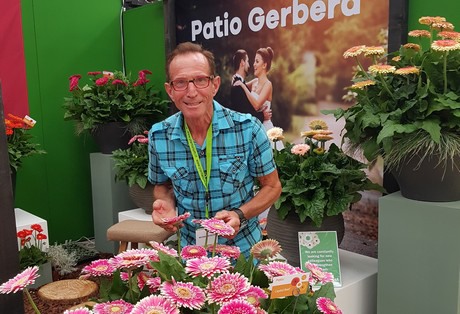 En waar groen is, daar is Rob Verlinden (foto is van Robin van der Meer, van Florist Holland, met een van de patio gerbera's)