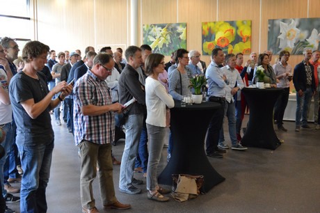 Tijdens de afsluitende borrel werden de creaties van Joan en Pascal onder de aanwezigen verloot. Bovendien werd kort stilgestaan bij Hein Huijg, bekend en gewaardeerd collega calla kweker uit Breezand, die afgelopen week kwam te overlijden.