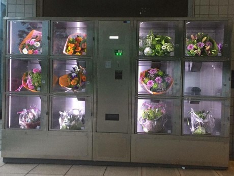 De bloemenautomaat is nagenoeg hetzelfde als een standaard boerderijautomaat. Deze variant biedt ruimte aan twaalf boeketten. "Het enige verschil is dat er voor bloemen een plastic koker en een verstelmechanisme is ingebouwd zodat ieder bosje of boeket is voorzien van water en iets in hoogte kan worden versteld", laat Jeroen zien. "Zo heb je er toch weer een verkooppunt bij."