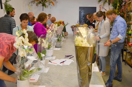 Een club handelaren kwam gisteren in Rijnsburg bijeen om een reeks boeketten en phalaenopsis planten, die besteld waren bij ’s lands grootste online aanbieders, te keuren. Deze waren op anonieme adressen bezorgd. Vervolgens verzamelde gastheer 2Dezign ze op kantoor en konden deelnemers, gewapend met pen en papier, per bestelling hun mening geven. Voorafgaand aan de bijeenkomst werden de leveranciers gebeld en uitgenodigd, maar deze gaven op een aantal na niet thuis.