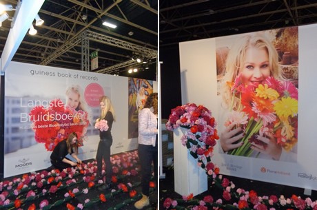 Zoals aangekondigd zou er een poging gedaan worden 's werelds grootste bruidsboeket te maken - en dat is gelukt. Het vorige record, dat stond op 67,25 meter, is met ruim 40 meter overtroffen tot een totale lengte van 109 meter.