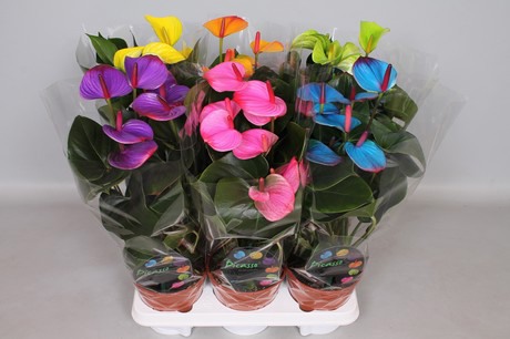 RijnPlant heeft de laatste jaren geëxperimenteerd met het verven van Anthurium. Hieruit is het concept “Picasso “ geboren, vernoemd naar de meester-schilder. “Tot nog toe is het niet mogelijk om een gele anthurium te kweken, alhoewel het niet uitgesloten is dat dat in de toekomst ooit gaat lukken.”