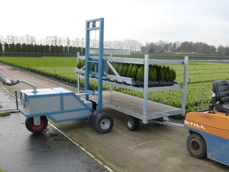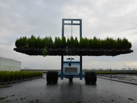 Bij AV Plant rijden nu drie PowerMovers en twaalf getrokken transportkarren. "Per persoon kunnen we bijna dubbel zoveel planten per uur verwerken." De PowerMover kan makkelijk 18 trays over een breedte van drie meter met coniferen oppakken, zelfs al zijn de wortels wat vergroeid in het worteldoek. Bovendien kan er dankzij de PowerMovers bark gestrooid worden, omdat de PowerMover horizontaal kan oppakken. "Dankzij het bark strooien hebben we veel minder last van onkruid in de pot. Voorheen pakten we de trays met de handen van de grond en dan valt er sowieso wat bark op de grond. Dat scheelt', besluit Verloop.