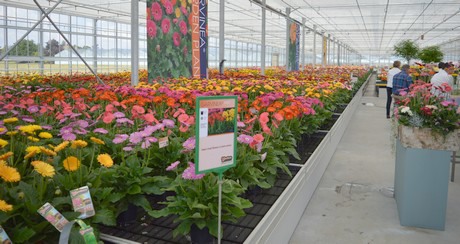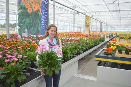 Dat vertelt Martine van Went, marketing manager bij Florist. Het bedrijf is een van de grote spelers op de markt in de veredeling en vermeerdering van gerbera’s. Tijdens de FlowerTrials twee weken geleden stonden de deuren open voor bezoekers en toonde het bedrijf een grote, bonte verzameling planten: groot- en kleinbloemige varianten, gerbera’s uit zaad en uit weefselkweek, snijbloemen en potplanten en natuurlijk de nieuwste variëteiten hierin. “In de snijbloemen onderscheiden wij vier hoofd segmenten,” aldus Van Went: “Standaard, Mini, Pomponi en Piccolini. In de potplanten maken we onderscheid tussen planten voor binnen en planten voor buiten. Flori Line is onze zaadlijn voor pot – dat als commodity haar weg naar de supermarkt vindt. De serie staat bekend om haar stralende kleuren en bijzondere bicolours. Sundayz, eveneens uit zaad, zijn compacte planten met dubbele bloemen, geschikt voor op het terras en het balkon. En dan is er natuurlijk de Garvinea, die winterhard is en boeit van het vroege voorjaar tot de winter.”