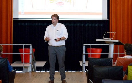 Het thema van de dag – marketing in de tuinbouw – kreeg pas echt invulling bij Scelta Mushrooms. Ooit begonnen als champignonkweker doet het bedrijf nu alles met champignons – handel, innovatie, productontwikkeling en marketing – behalve het kweken ervan. Jan Klerken Junior, derde generatie in het bedrijf en zoon van de huidige baas Jan Klerken, verzorgde een inleidend praatje: "Er zijn vijf sectoren waarin wij actief zijn: frozen, preserved, snacks, flavourings en ceuticals. Wij zijn niet erg zichtbaar in de supermarkt, maar zogezegd achter de schermen stiekem een toonaangevende speler op tal van gebieden. Wij zijn de grootste leverancier van diepvrieschampignons wereldwijd. Waar je ook bent in de wereld, als je er een pizza eet en er zitten champignons op, dan komen die hoogstwaarschijnlijk bij ons vandaan; en de poeder in de Cup-a-Soup? - ook waarschijnlijk van ons."