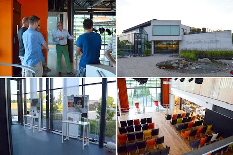 Frans van Leijden vertelt over de Brightbox. Recht boven een kijkje in de box; links onder, de box van de buitenkant. Rechts onder: de regelsystemen op het dak van de box.