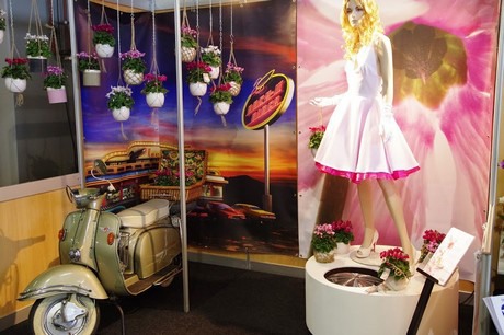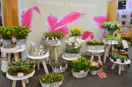 De opvallende stand van Ten Have, waarin de bijzondere cyclaam Petticoat, een bloem met hangende blaadjes, gepresenteerd werd.