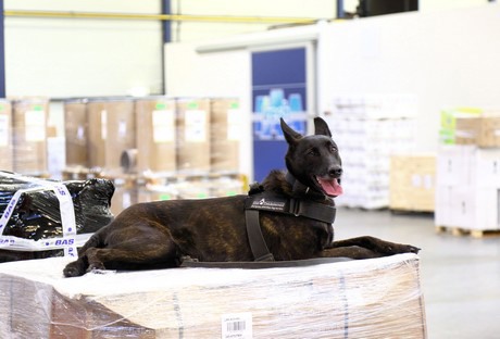 Een bijzondere werknemer bij IAA Fresh: de 'explosive ditection dog'. Elke avond checkt de hond binnenkomende goederen op de aanwezigheid van verboden stoffen.