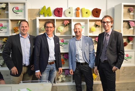 Vlnr: Chris Biesheuvel, Nico Kiep, Arthur Zwinkels en Albert Kiep. Hier in de stand van Quality Flower op de FHTF enkele weken geleden in Aalsmeer.