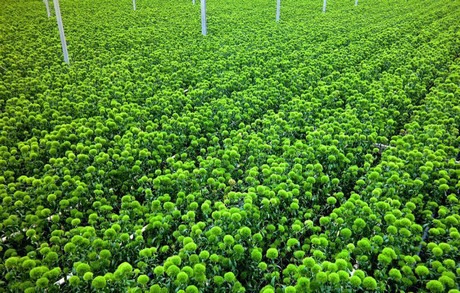 De Green Trick is eigenlijk een zomerbloem en komt ook als zodanig voor de klok. Toch is die categorisering niet helemaal juist. De teelt is, zoals gezegd, langzaam en intensief. “Wij hebben al vaak onze inschattingen qua tijd en planning moeten bijstellen. Meestal betekende dat: het duurt allemaal wat langer. Daarnaast is chrysanten een warme teelt en heeft de Green Trick veel minder behoefte aan hoge temperaturen. De ramen staan dan ook vaak open, zelfs als het fris is buiten. Tegelijkertijd heeft de Green Trick weer wel veel behoefte aan licht, omdat het zonder niet mogelijk is die mooie bolvorm te krijgen. In de winter wordt het wat al te fris en gaat de teelt trager; in de zomer is het noodzakelijk voortdurend veel te luchten. Lampen aan en ramen open dus.”