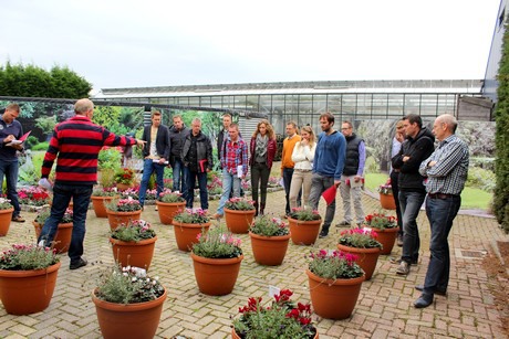 “De bloeiproeven zouden 3 weken in beslag nemen, maar omdat de mensen blijven komen houden we de deuren langer open. Zo komt er deze week een groep van 60 Poolse kwekers”, vertelt Bart Kuijer, die samen met zijn vrouw Marga het bedrijf runt. “Ik geloof niet dat die allemaal Cyclamen kweken, maar het duidt in elk geval op grote belangstelling en dat is natuurlijk mooi. Wat daarnaast een hoogtepunt was”, vertelt Bart verder, “was de exporteursdag op woensdag 28 oktober. We hadden de hele keten uitgenodigd, van handels- tot retail partijen. Daar hebben wij als veredelaar normaal gesproken weinig contact mee en het was daarom erg leuk en leerzaam hun opmerkingen en ideeën aan te horen.”