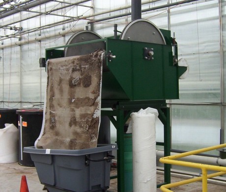 Om dit probleem het hoofd te bieden heeft Agrozone de emissieloze doekfilter ontwikkeld: een eenvoudige doch effectieve machine, waarbij het water door een doek gefilterd wordt. Het systeem werkt drukloos, waardoor op energie bespaard kan worden, en is makkelijk in de watercirculatie in te bouwen. Wanneer er een laag vuil op het doek ontstaat, stijgt het waterniveau in de bak. Wanneer dit waterpeil een bepaalde hoogte bereikt, wordt dat geregistreerd door sensoren. Vervolgens wordt het doek een stukje doorgedraaid, waardoor het water door een schoon stuk doek gelijk weer wegloopt. Het vuile doek wordt opgevangen in een afvalbak. “Behalve effectief, heeft men nu fysieke controle op wat er daadwerkelijk aan afvalstoffen in het water zit”, besluit Bas. “Dat kan erg handig zijn. Zo sprak ik laatst een teler, die in het residu wormpjes aantrof. Met een zandfilter zou hij dit nooit gezien hebben. Vervolgens kon hij in het gewas op zoek naar de bron en zodoende tijdig ingrijpen.”