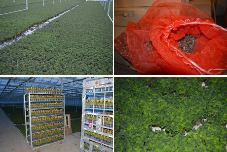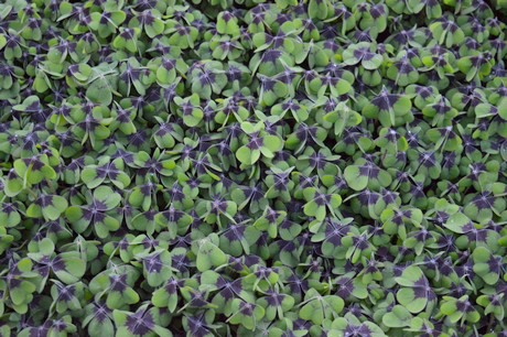 De Oxallis deppei, zoals de officiële naam van het klavertjevier luidt, is een logistiek wat ingewikkelde en bovendien gewaagde teelt. Allereerst wil de consument hem voor nieuwjaar hebben en anders niet. Dat betekent dat de bolletjes een maand of wat daarvoor opgepot moeten worden, waartoe natuurlijk tijd en vooral ruimte moet zijn. Dan schiet het plantje op en, zeker wanneer het warm en licht is, zitten ze voor je het weet tegen het plafond. Wacht je daarentegen te lang, dan ben je te laat. De juiste inschatting maken is dan ook erg lastig en erg weersafhankelijk. Zo is het dit jaar bijzonder warm en groeien de plantjes veel te hard. Door het spuiten met groeiremmers kon het ergste kwaad voorkomen worden, maar het is niet helemaal te vermijden dat ze wat te groot de deur uit gaan.