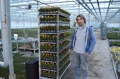 Voordeel van dit alles is dat bijna niemand – er is een andere, maar die doet alleen maar een vakje – het aandurft en dat als prijzen gunstig zijn, het jaar bij voorbaat al geslaagd is. En dan kan er, zoals Nils doet, de rest van het jaar in alle rust wat anemonen of ander plant- en perkgoed gekweekt worden.