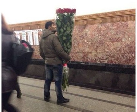 In Rusland lijkt een geschenk het liefst zo groot, duur en indrukwekkend mogelijk te moeten zijn. Waar de jongen op de foto dit bosje gekocht heeft, is niet vermeld en ook niet wat ze gekost hebben. Maar dat hij er indruk mee gemaakt heeft, dat zal toch wel?! (bron: Twitter: Only in Russia)