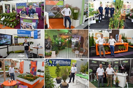 Van linksboven mee met de klok: Julia de Jong en Arie Vermeulen van De Jong Plants; Marco Wesselink van Hoogendoorn; Bart en Cris Oostveen en (rechts) Henk Braam;Paul Bremmer en Richard Bregman van Bremmer Boomkwekerijen; Peter Fase en Tom van Valk van Culvita; Jaap Wezelenburg; Robbin den Herder van Dummen Orange; Jelmer Huizing van WEVAB Codema; en in het midden het 'House of Inspiration'.