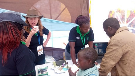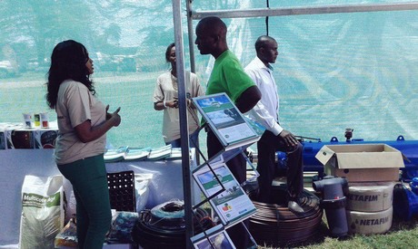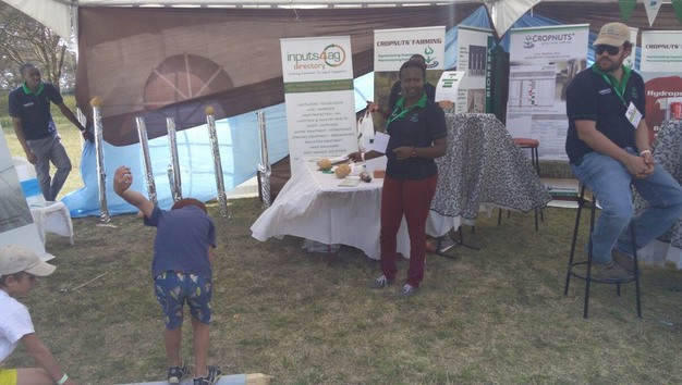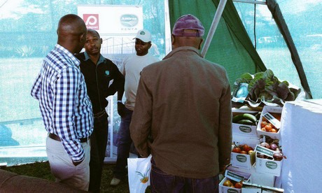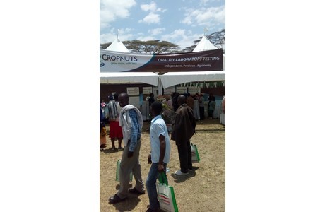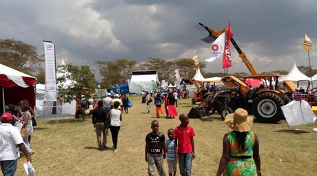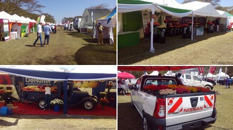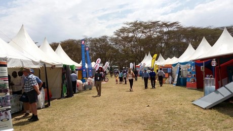 Bovenstaande twee foto's werden op Twitter gepost door Charles Mwangi. "It's a full house at the @nhfair. Lots of innovative farming solutions on show."