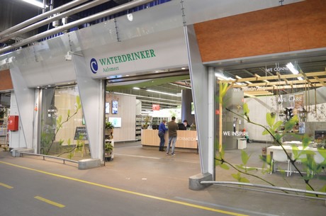 In de Cash & Carry van Waterdrinker vindt men niet minder dan 9.000 soorten binnen- en buitenplanten, inclusief zo'n 300 soorten orchideeën. En daarnaast natuurlijk een uitgebreid assortiment potten en andere toegevoegde waarde artikelen. Een en ander verschilt, qua dagelijkse gang van zaken, weinig van een 'normale' winkel: klant komt binnen, loopt rond, vult karretje en rekent af bij de kassa. Daarnaast is de Cash & Carry het magazijn waaruit online bestellingen gepakt worden.