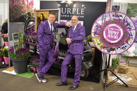 'We hebben twee 'kernwaarden': paars, en opvallen', aldus Gertjan Sosef van Deel Purple. Rechts van hem kweker en trotse bierbrouwer in ruste trotse Ton Swinckels
