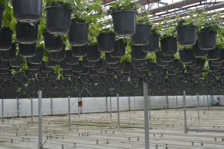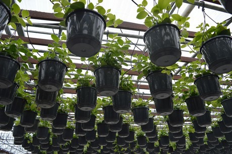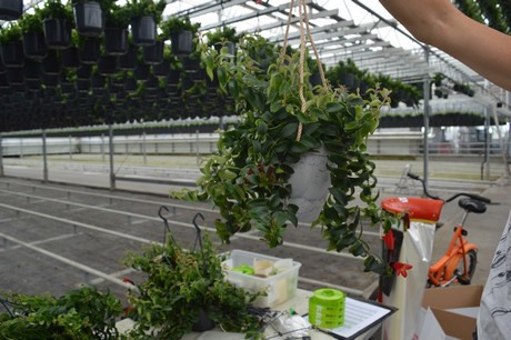 Vorige week brachten we de kweker een bezoekje. Een bijzonder gezicht, al die hangplanten.