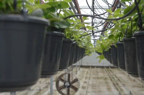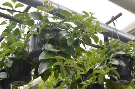 De plant wordt jaarrond op tafels vermeerderd. Wanneer ze de gewenste lengte hebben, worden ze opgehangen.
