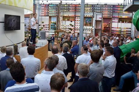 Bunnik is kweker van kamerplanten, maar ruim een decennium geleden (in 2005) kwam daar de handel in toegevoegde waarde bij. Inmiddels is het al lang geen bijzaak meer: op grote schaal - er wordt momenteel zelfs een eigen fabriek gebouwd in China - worden telkens nieuwe creaties bedacht. Volgens Thomas Bunnik, die op de bar klom en officieel het glas hief op de nieuwbouw en de toekomst, is dat dan ook de corebusiness: telkens nieuwe en mooie dingen bedenken. "Daarom alle werk en alle moeite om waarde te creëren voor de consument, opdat de wereld maar telkens een stukje mooier mag worden."