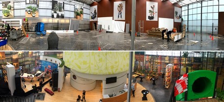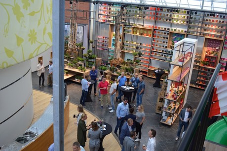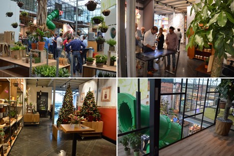 De hal maakt indruk. Groot en hoog, met nieuwe snufjes als een groot podium met bar, een glijbaan, kunstzinnige, botanische constructies aan het plafond en meer. Er is een extra verdieping ingebouwd, waarin de nieuwe kantoren gevestigd zijn, en er staan hoge stellingskasten vol ideeën voor de kerst, de Pasen en andere feesten. Ook staat een enorme touchpad met beamer klaar om de klanten mee in te palmen.