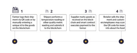 Vereenvoudigde weergave van blockchain in de voedingsketen