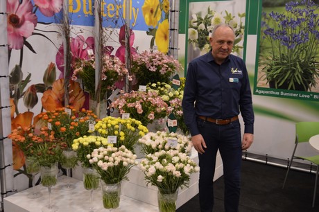 Daan Kneppers, GreenWorks, krijgt het voor elkaar om nu bloeiende ranonkels en pioenen te presenteren