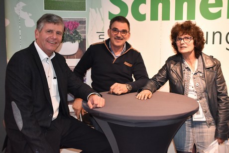 Anton Hooijmeijer van Schneider samen met Johan de Blaaij en zijn vrouw van Geranium kwekerij Ramona