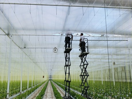 Tholen – In de kassen groeien de meeste gewassen inmiddels flink door en her en der wordt al voor het eerst geoogst. Toch is dit ook het moment voor onderhoud, menen de mannen van Doek en Draad. “De meeste kou lijkt voorbij en van echt fel zomerzonlicht is nu ook nog geen sprake. Daarom is het nu een goed moment voor onderhoud om de levensduur van schermdoek te verlengen”, aldus Cees van der Kaaij.
