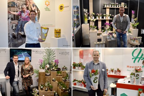 Frank Nielen was Oase Plants was helemaal in stijl voor zijn Pink Kisses; Gerard van Reijn van Elburgsmit maakt een lolletje met Yuri Westhoff van Gebr. Valstar; de mannen van Nolina, Steef de Lange en Erik Bos; en Willianne Sluiter van Sluiter-Ellwoodii