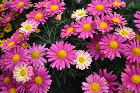 Aramis Lemon & Pink van Benary+. Deze Argyranthemum fruescens (struikmargriet) heeft tweekleurige bloemen, die door de tijd heen in elkaar overlopen en in intensiteit toenemen