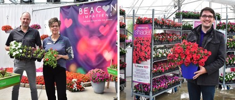 Links Ruud Brinkkemper en Lisa Lacy van PanAmerican Seed met de Beacon impatiens, en rechts Brandon Willis van Syngenta met de Imara.
