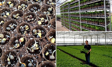 “Als de zaden bij ons binnenkomen, worden ze behandeld en in de kiemcel geplaatst waar de zaden ontkiemen. Wekelijks doorzoeken we de zaden en halen de gekiemde exemplaren eruit. Deze poten we op in verteerbare potjes en kweken we op in de kas. Na enkele maanden groeien, sorteren we de planten op maat, verwijderen we de planten die niet goed gegroeid zijn en leveren ze uit aan de kweker. Deze kweekt de jonge plant op tot een plant geschikt voor de verkoop.”
