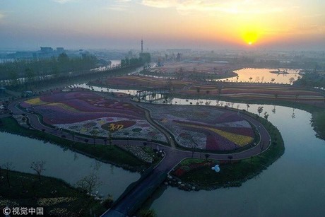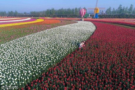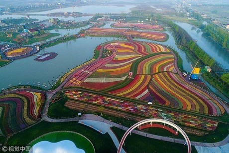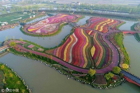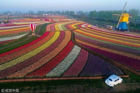 Tholen - Zo ziet de Keukenhof van China - het Holland Flower Park oftewel Dafeng Helan Hua Hai (gelegen aan de oostkust, een kilometer of 200 boven Sjanghai), er nu uit. Afgelopen zaterdag kwamen er 380.000 mensen op bezoek; in drie dagen tijd waren dat er 650.000.