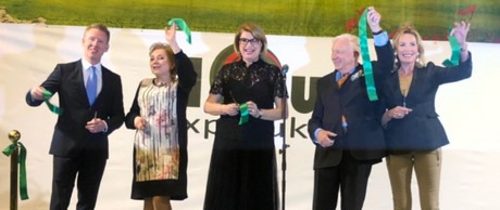 De beurs werd geopend door (v.l.n.r.) directeur Nova Exhibitions Kuno Jacobs, Iryna Slobodyanyuk, voorzitter Flower Counsil Ukraine Maryna Kinakh, Nederlands ambassadeur in Oekraïne Ed Hoeks en zijn vrouw & 'Honorary President of Flower Expo Ukraine' Odilia de Ranitz .