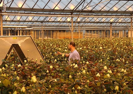 Afgelopen zomer startte Bernard met een nieuwe teeltcyclus Avelanche rozen met aangepaste verlichting en verhoogde teeltbedden