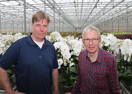 Een bord naast de kruising van de doorgaande weg wijst de route naar de vier bedrijfslocaties van de familie Bernard. Op steenworp afstand van elkaar staan hier twee rozenkwekerijen van elk 3 hectare, een orchideeëntuin van 6 ha en een productielocatie met 10 ha tuinplanten. Simon Bernard runt het bedrijf samen met zijn broer Bram. Mede dankzij hun eigen transporttak lukt het de broers om zich hoofdzakelijk te richten op het hogere segment, waarbij ze zowel de groothandel als de retail rechtstreeks bedienen. “Een klant die tien Deense karren tegelijk bestelt, is voor ons best groot”, geeft Simon Bernard aan. Voor de klanten zijn een goede kwaliteit en een duurzame teelt belangrijk. Vandaar dat ze veel aandacht besteden aan de gewasbescherming. Stap voor stap werken ze aan een verdere verduurzaming van hun teelten, waarbij ze het liefst zo min mogelijk ingrijpen. “Bij de insectenbestrijding werken we nu 80 procent biologisch. Dat gaat goed, al is bijvoorbeeld trips hier in de zomer wel een groot probleem. We zitten midden in een akkerbouwgebied, waardoor de druk vrij hoog is. Toch houden we vast aan ons doel om de bestrijding voor 95 procent biologisch te doen.”