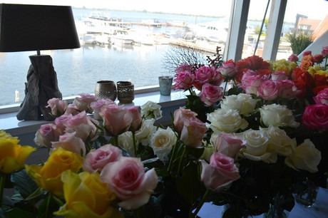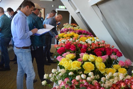 Tholen - Een presentatie in een kroeg, dat is weer eens wat anders. De Ruiter Innovations, rozenveredelaar uit Amstelveen, toonde gisteren een breed assortiment Keniaanse rozen – voor een deel reeds commerciële rassen, voor het overige nog niet eerder geïntroduceerde variëteiten – aan de handel. In ruil voor een natje en een droogje werd deze vriendelijk verzocht een 67-tal vazen te beoordelen op kleur, bloemvorm, blad, gebruikswaarde en rijpheid.