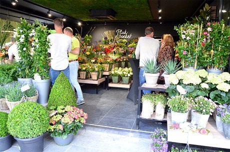 In de fysieke shop wordt naast het Topbloemen.nl aanbod ook iets nieuws geprobeerd. Klanten kunnen zelf een plukboeket van 12 bloemen samenstellen voor 15 euro. Ook is een deel van de winkel afgeschermd. Daar kan men onder het genot van een kopje koffie rustig naar trouw- en rouwboeketten kijken. “Omdat ik het belangrijk vind dat mensen de rust en privacy krijgen bij het uitzoeken van zo’n belangrijk boeket”, aldus storemanager Wouter Ploeger.