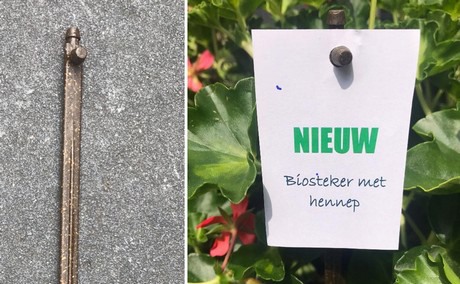 Nieuw in de Growfun collectie is een infosteker die voor 100% vervaardigd is uit biologisch afbreekbaar materiaal. In dit 'biostokje' is bovendien hennep verwerkt.