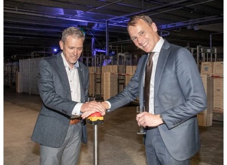 Met een druk op de knop namen Jan van Hoef, managing director van Limex en Yme Pasma, COO Royal FloraHolland de nieuwe fustwasmachine in Aalsmeer in gebruik.
