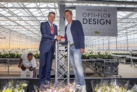 Opti-flor heeft op feestelijke wijze haar zevende teeltlocatie officieel geopend. De opening werd, onder het toeziend oog van het personeel en andere genodigden, verricht door de burgemeester van het Westland, Bouke Arends. Met de 2,5 hectare uitbreiding heeft Opti-flor inmiddels in totaal 17 hectare aan tuinbouwgrond voor de teelt van Phalaenopsis.
