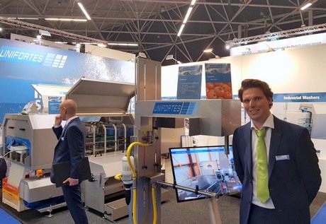 Robin van der Pligt, nieuw bij Unifortes, op de foto met de eveneens nieuwe desinfectie-unit voor ToBRV-preventie