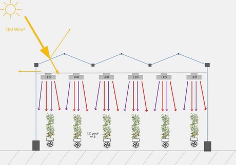 “Al voor de start van de bouw hebben we berekend hoeveel zonlicht er door het jaar heen in de kas komt en hoeveel LEDs er nodig zijn. Dit hebben we gedaan door de GPS-locatie te bekijken, het lokale klimaat en de voorkomende plagen en ziekten te onderzoeken en door rekening te houden met de apparatuur en de gewassen die in de kas komen. Zo creëert de tool de beste combinatie van zonlicht en kunstlicht.
