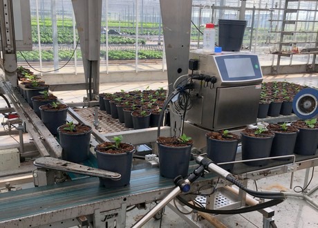 Voor zover zij dat nog niet gedaan hebben, doen kwekers er goed aan op dit vlak de nodige voorbereidingen te treffen. Heel ingewikkeld hoeft dat niet te zijn, bewijst bijvoorbeeld Potplantenkwekerij de Barreveld. “Het was een investering maar de inkjetmachine van De Koningh – Coding & Labeling, die we sinds maart in gebruik hebben, doet zijn werk”, vertelt Lambert Zwinkels “Nu krijgen alle planten op het moment van oppoten een eigen nummer, het plantpaspoort dus, dat middels de inkjetmachine met inkt op de pot gespoten wordt.”