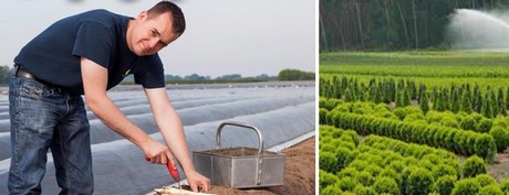 De teelt van asperges en de kweek van bomen- en sierteeltgewassen is behoorlijk verschillend. Toch koos ondernemer Rob van den Beucken bewust voor deze combinatie met het oog op arbeidsverdeling en risicospreiding.